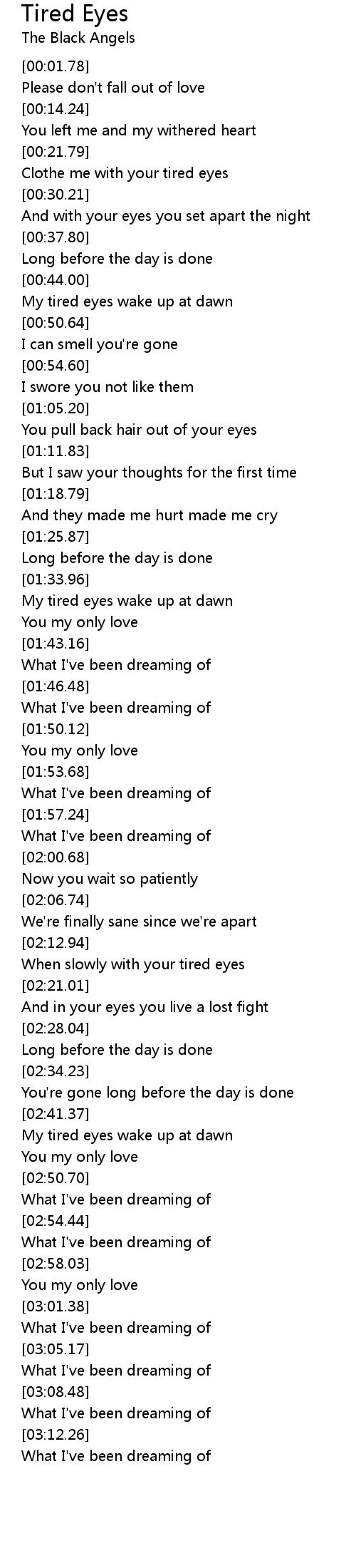 Clothe me with your tired eyes |