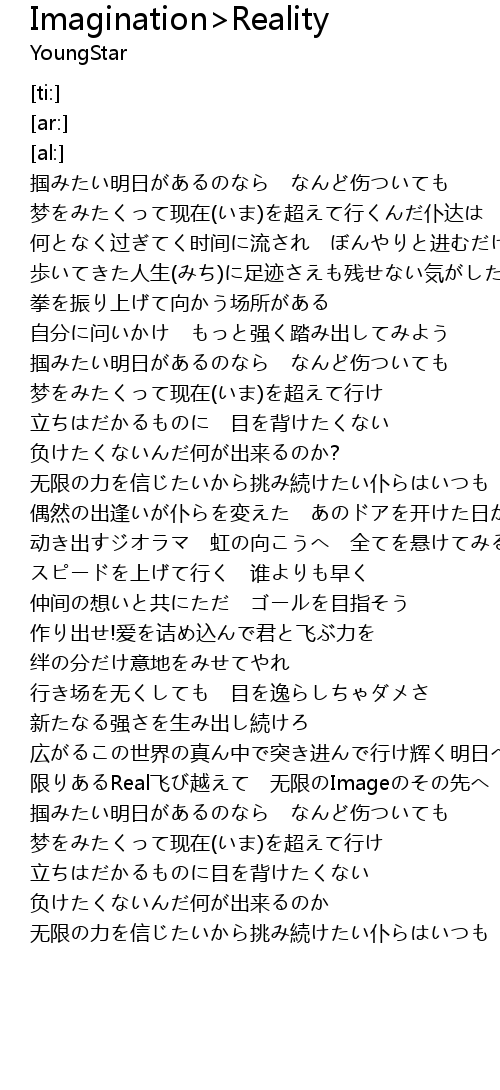 | [03:05.60] | 限りあるReal飞び越えて 无限のImageのその先へ |