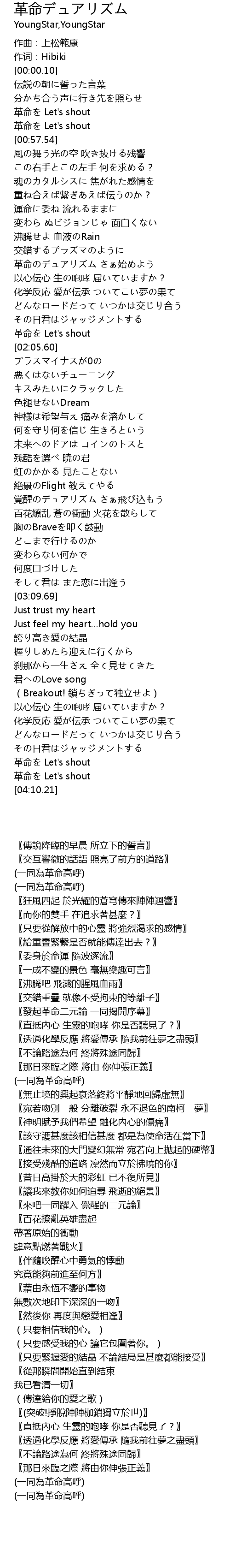 | [02:40.60] | 〖來吧一同躍入 覺醒的二元論〗 |