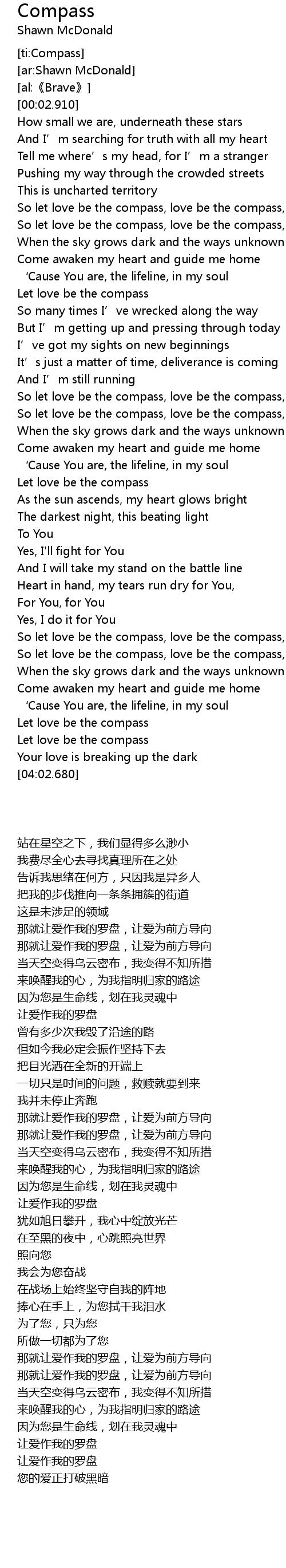 | [02:58.670] | 那就让爱作我的罗盘,让爱为前方导向 |
