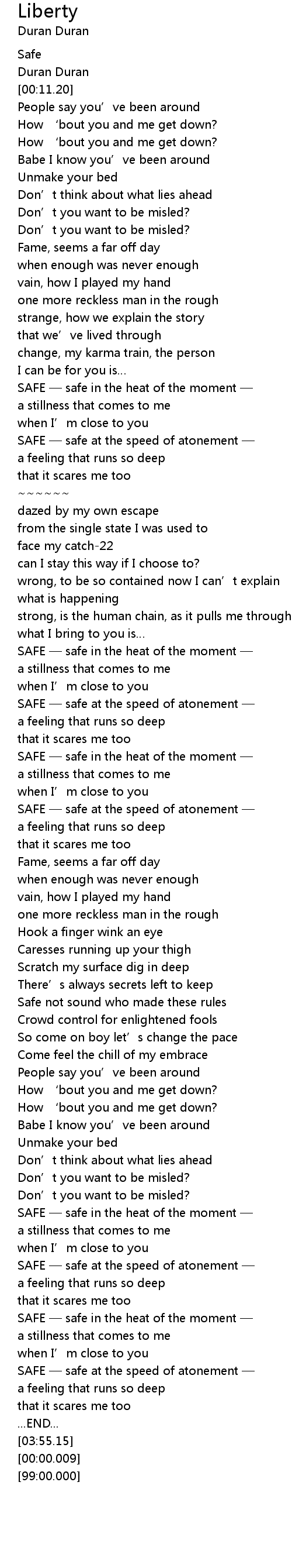 | [03:23.14] | SAFE safe in the heat of the moment |