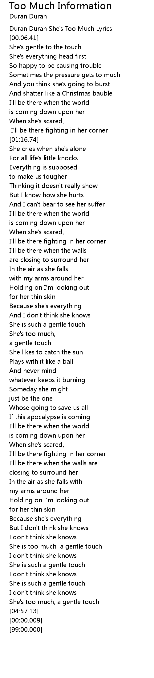 Duran Duran She's Too Much Lyrics |
