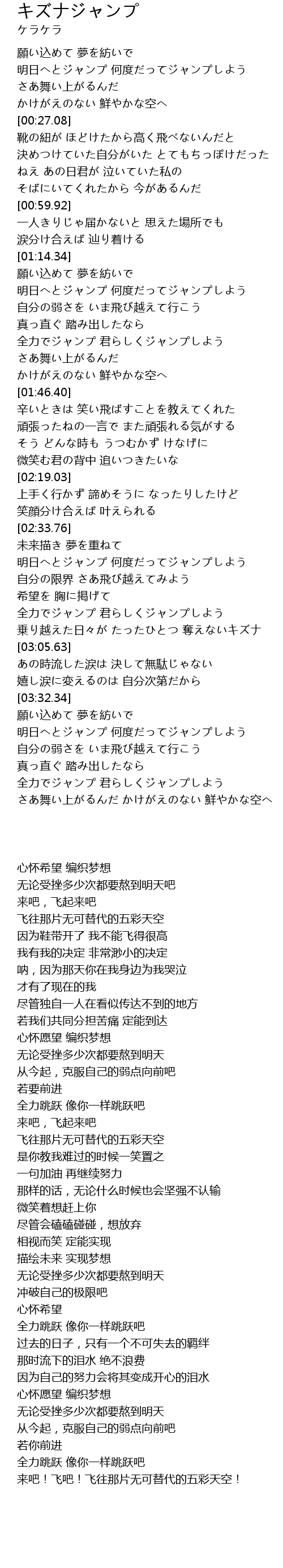 | [01:33.44] | 全力でジャンプ 君らしくジャンプしよう |