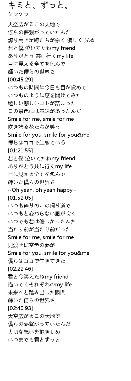 | [01:22.19] | 君と僕 泣いてたねmy friend |