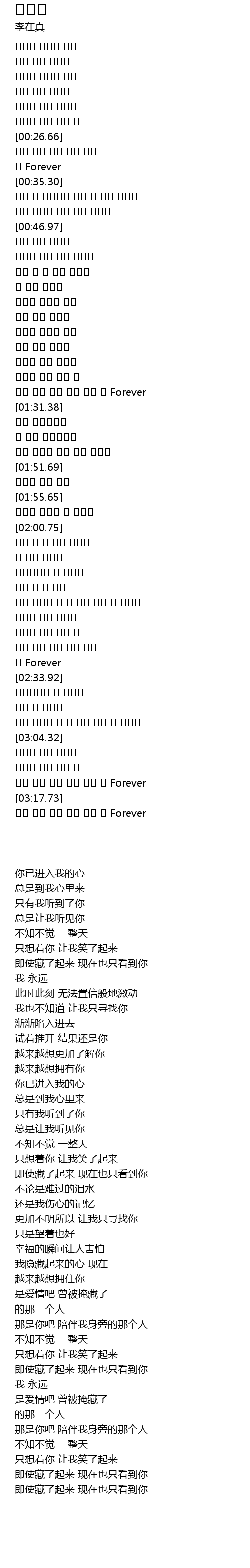 숨겨 봐도 이젠 너만 보여 난 Forever |