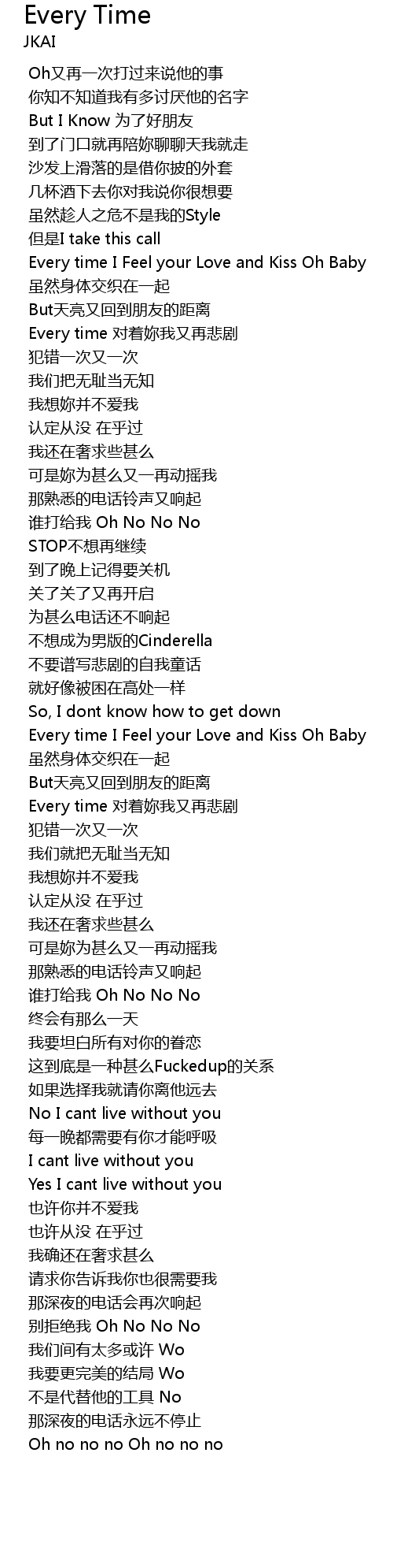 | 歌曲 | Every Time |