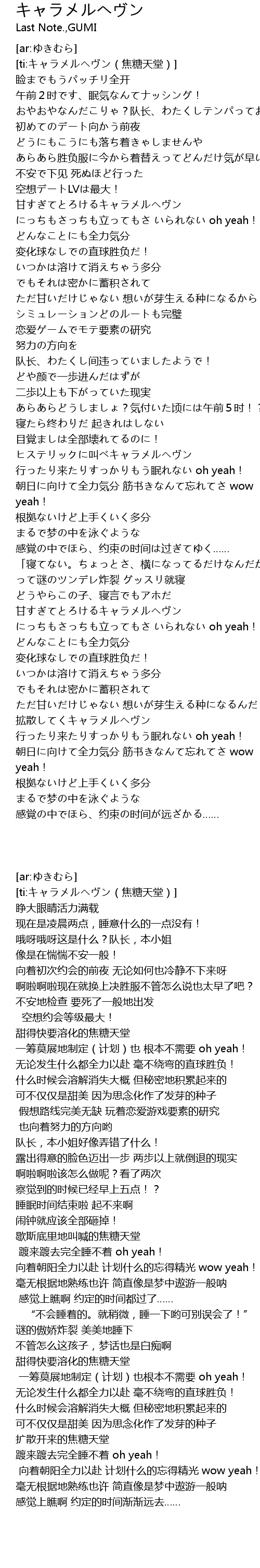 | [03:08.11] | 拡散してくキャラメルヘヴン |