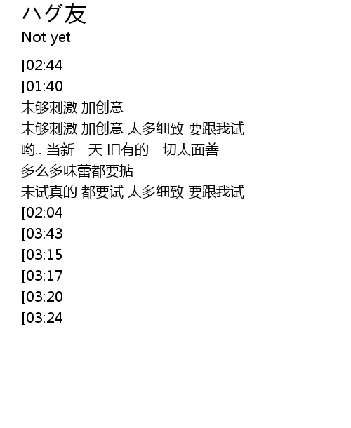 | [01:57] | 未试真的 都要试 太多细致 要跟我试 |