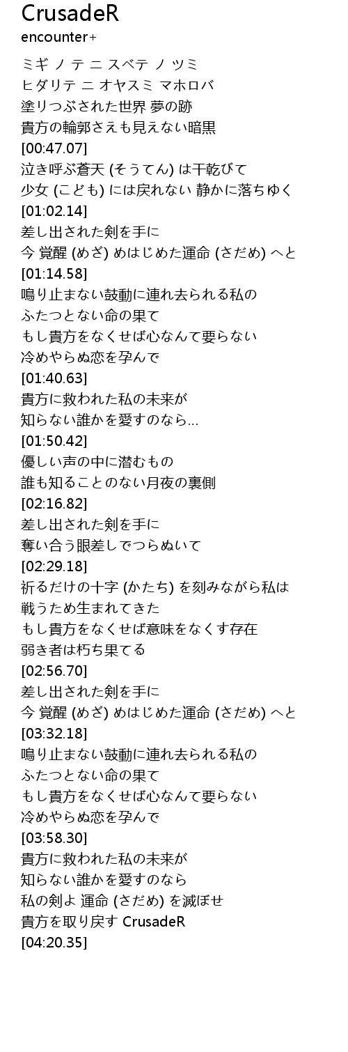 | [04:13.35] | 貴方を取り戻す CrusadeR |