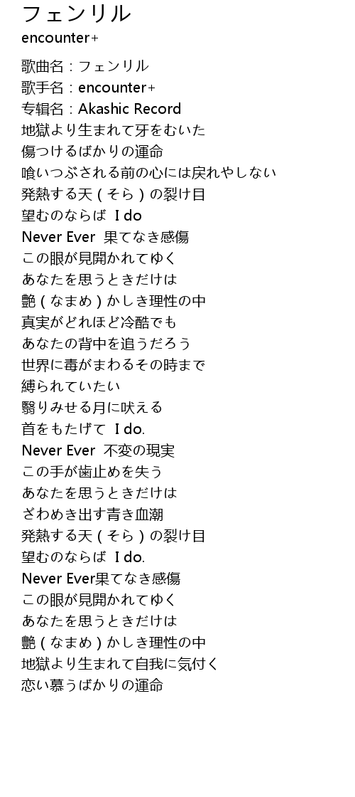 | [00:10.39] | zhuān jí míng: Akashic Record |