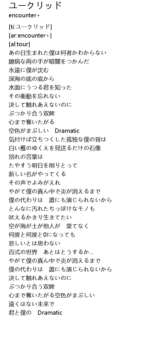 | [00:57.77] | あの日生まれた僕は何者かわからない |
