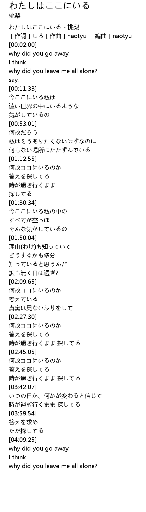 | [00:00.00] | わたしはここにいる - 桃梨 |