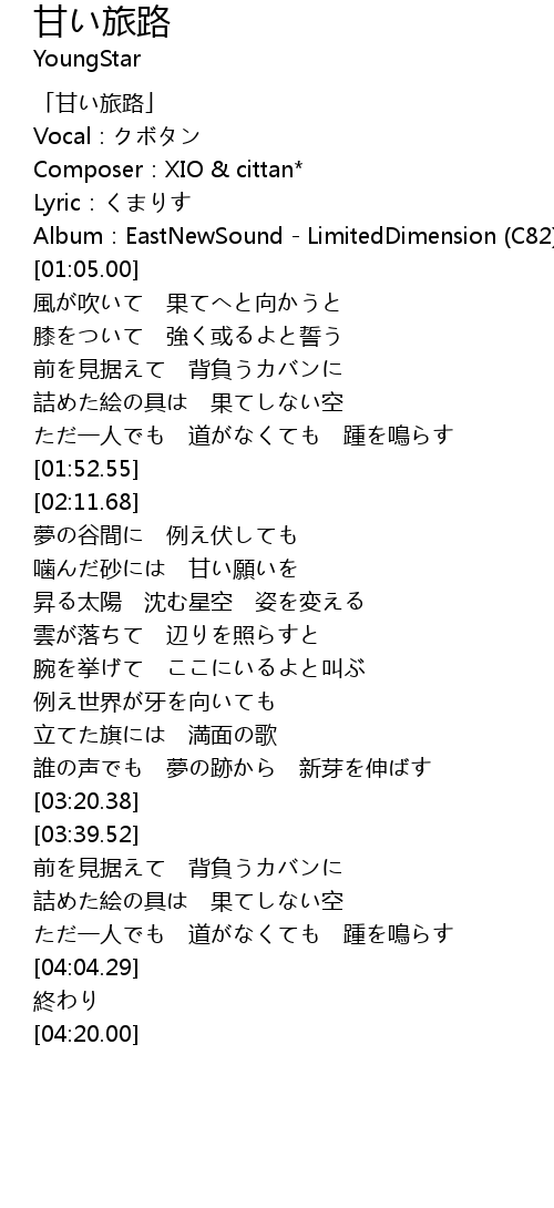 | [00:52.00] | Album:EastNewSound - LimitedDimension (C82) |