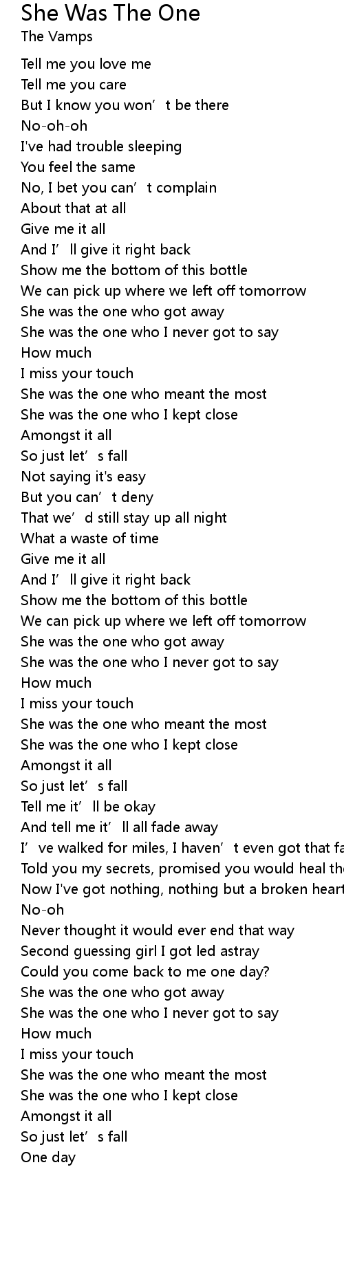 | She was the one who I never got to say | |