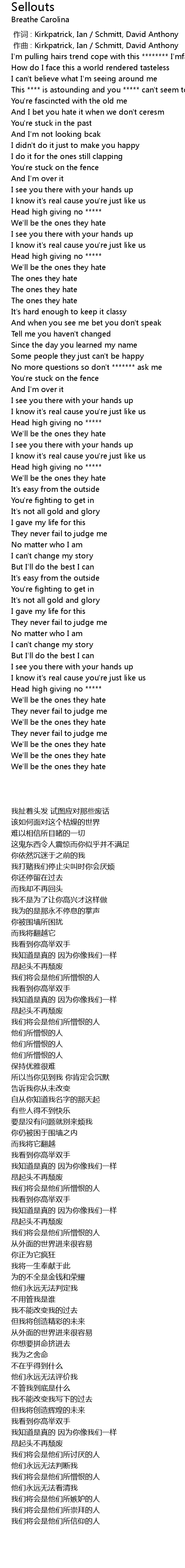 | 歌曲 | Sellouts |