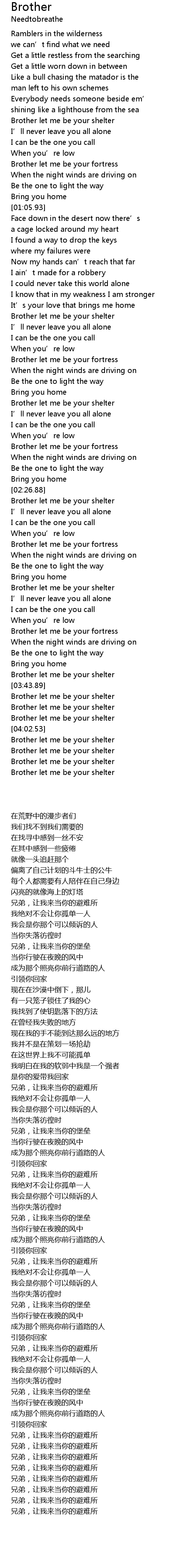 | [03:38.49] | Brother let me be your shelter |