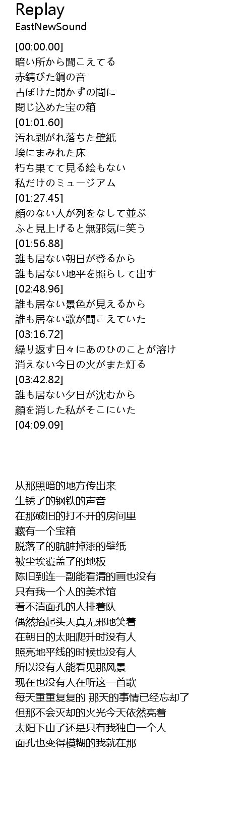 | [03:06.56] | 誰も居ない歌が聞こえていた |