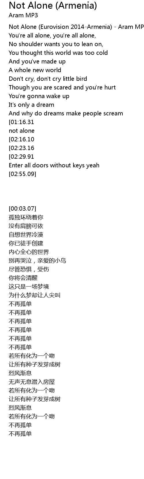 Not Alone (Eurovision 2014-Armenia) - Aram MP3 |