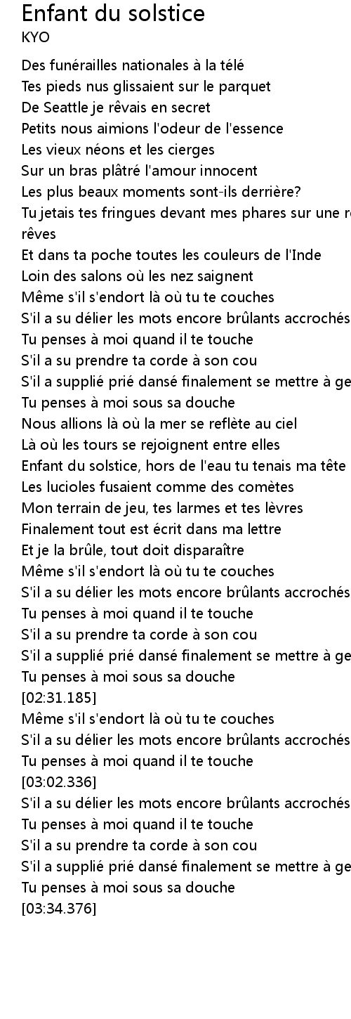 | [03:23.208] | S'il a supplié prié dansé finalement se mettre à genoux |