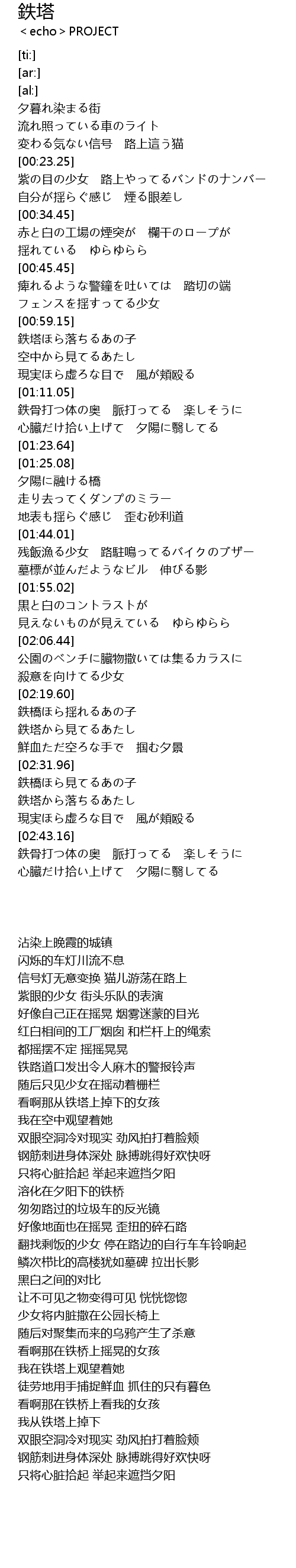 | [02:34.90] | 鉄塔から落ちるあたし |
