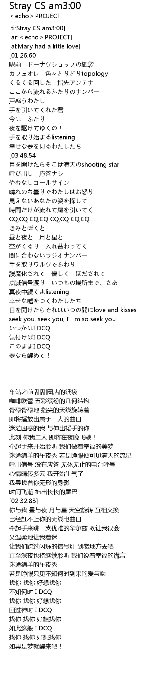 | [02:32.88] | CQ,CQ CQ,CQ CQ,CQ CQ,CQ…… |