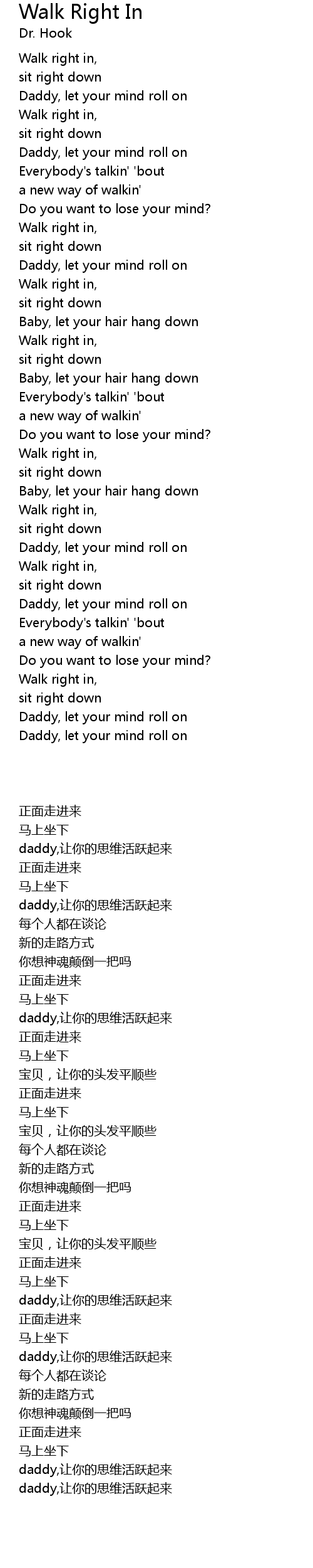 Walk right in, |
