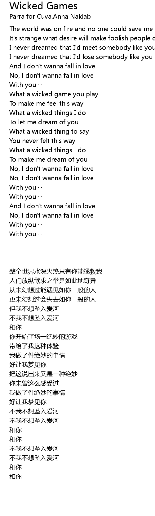 | 歌曲 | Wicked Games |