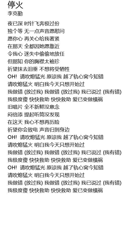 | [02:40.55] | OH! 请吹熄猛光 原谅我 越了轨心窝今知错 |