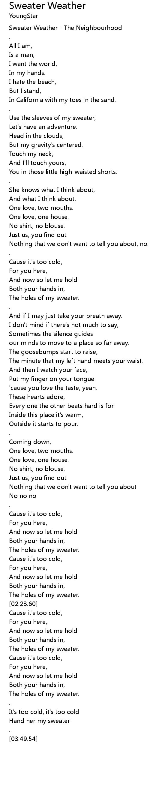 Sweater Weather - The Neighbourhood |