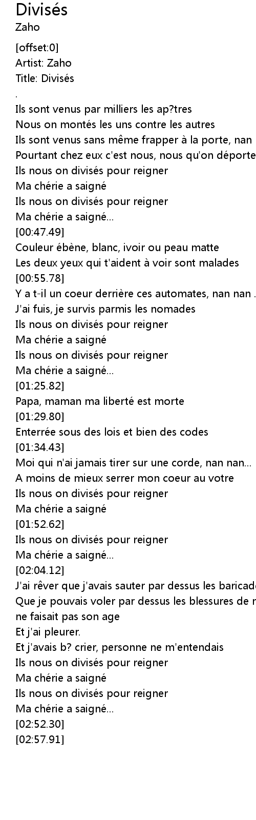 | [02:43.25] | Ils nous on divisés pour reigner |
