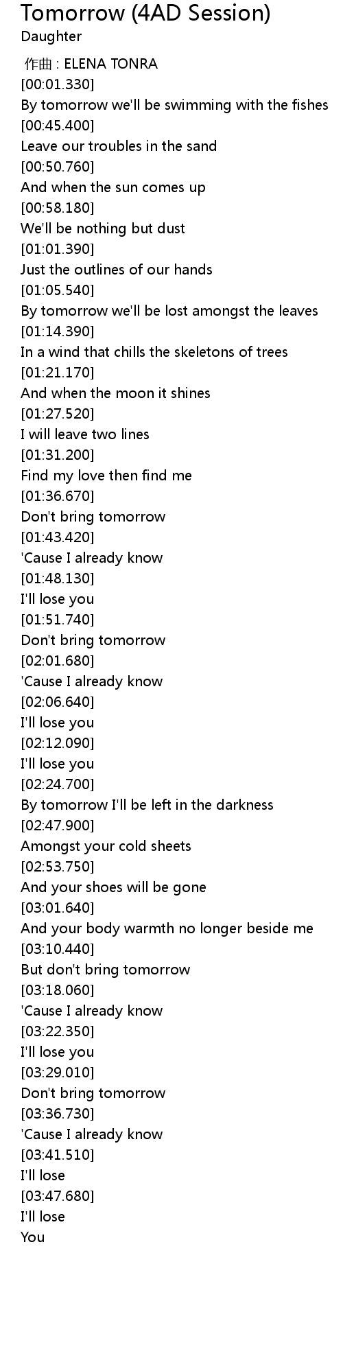 | [00:00.00] | 作曲 : ELENA TONRA |