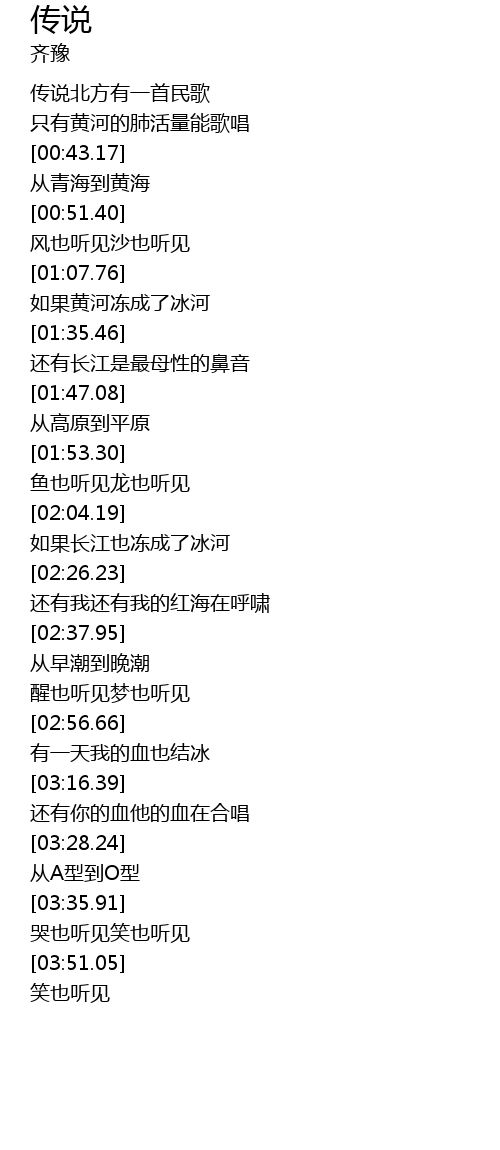 | [00:29.94] | zhǐ yǒu huáng hé de fèi huó liàng néng gē chàng |