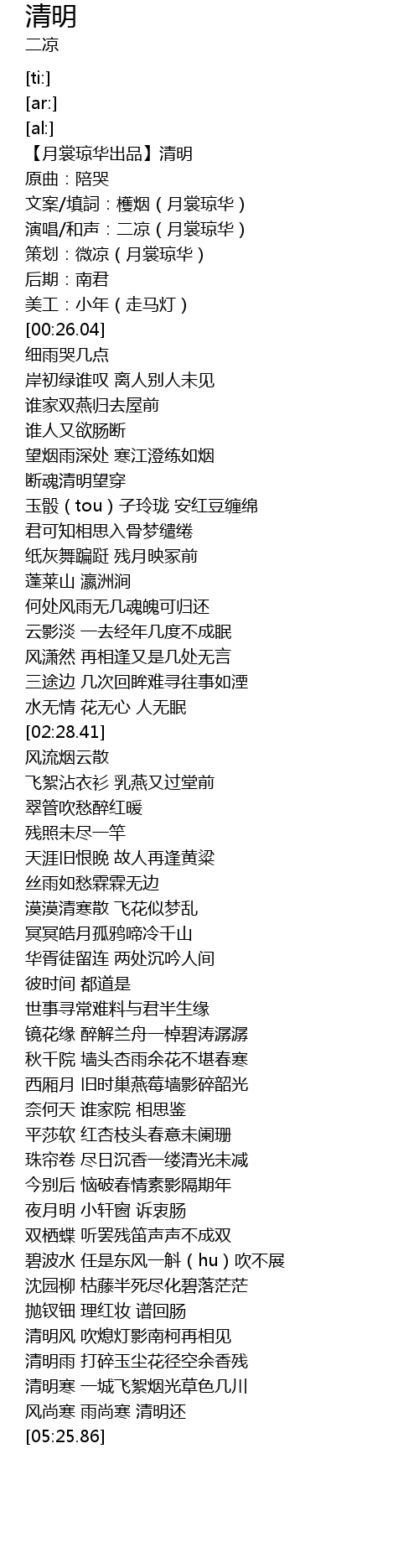 | [00:00.00] | 【月裳琼华出品】清明 |