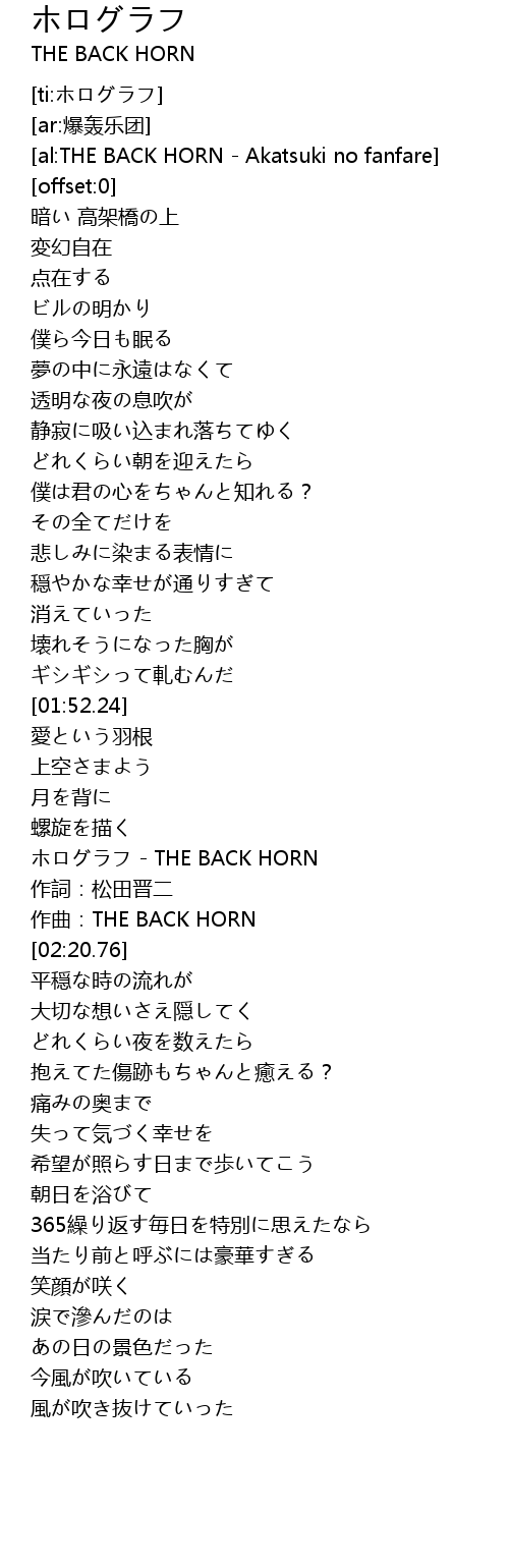| [02:15.01] | ホログラフ - THE BACK HORN |