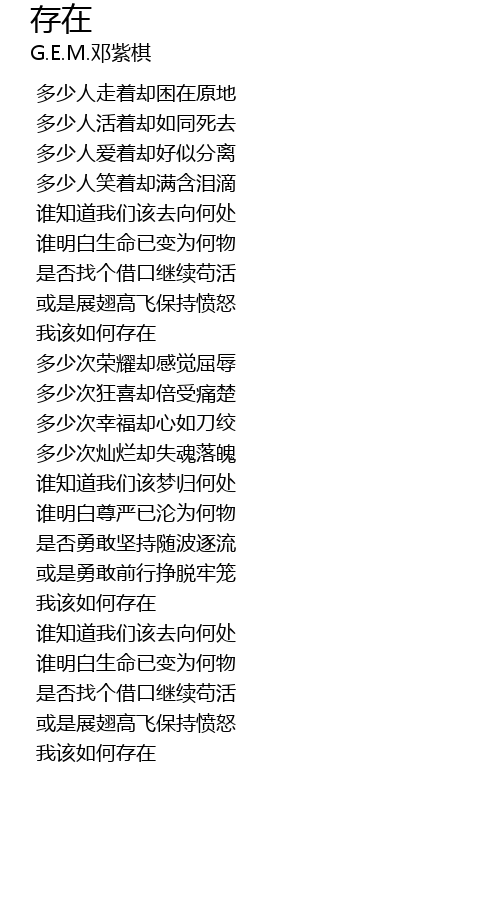 | [01:17.400] | 我该如何存在 |