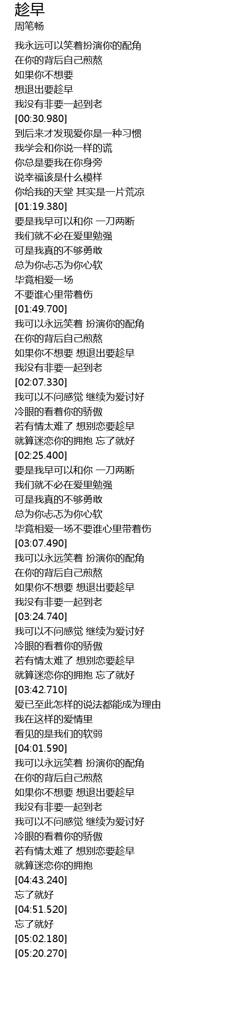 | [04:35.340] | ruò yǒu qíng tài nán le xiǎng bié liàn yào chèn zǎo |