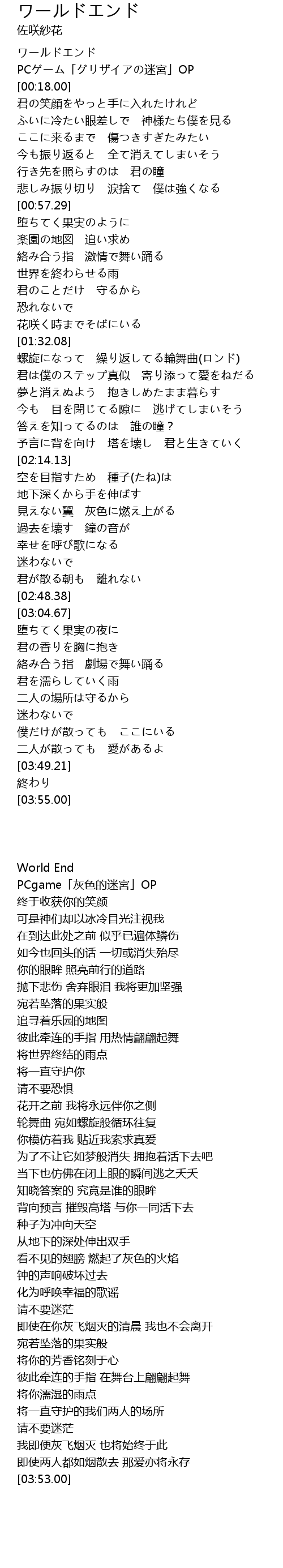 | [00:03.00] | PCgame「灰色的迷宮」OP |