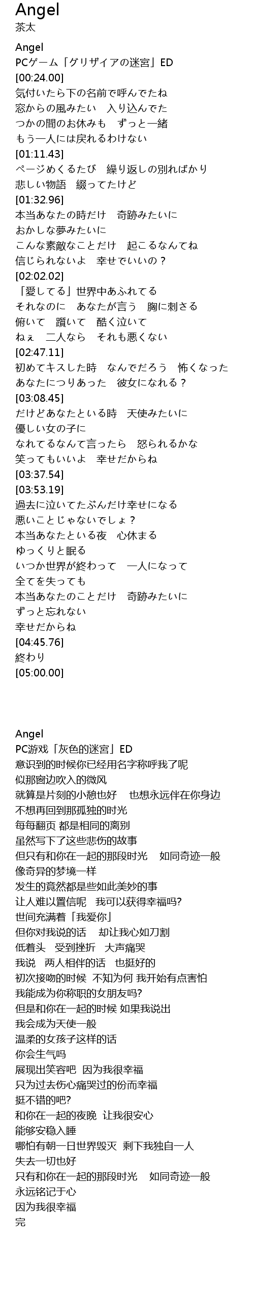 | [00:04.00] | PC游戏「灰色的迷宮」ED |