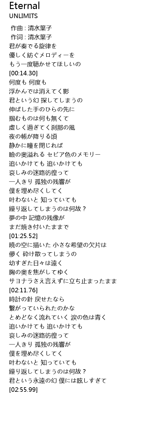 | [02:47.80] | 君という永遠の幻 僕には眩しすぎて |