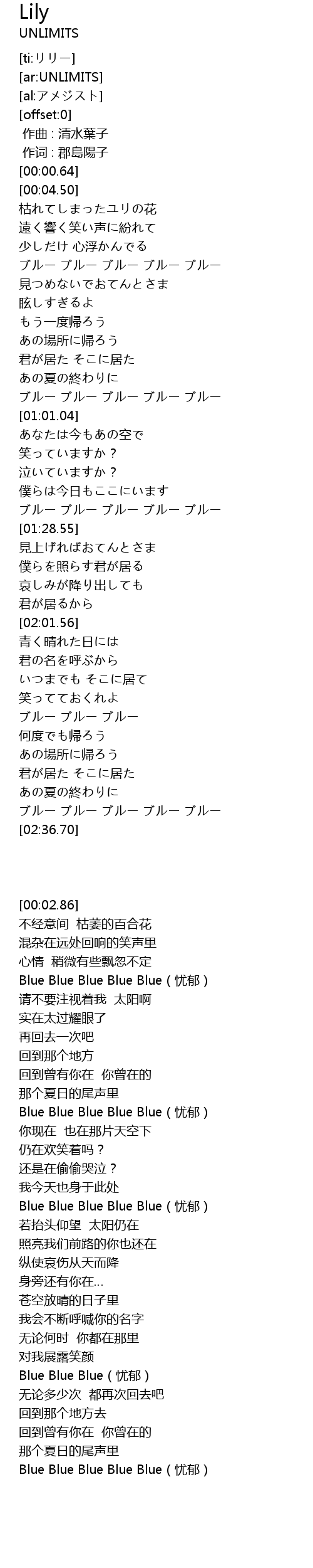 | [02:31.49] | Blue Blue Blue Blue Blue(忧郁) |