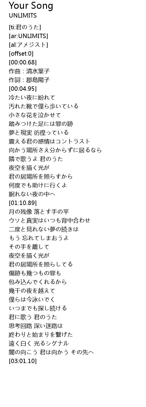 | [01:43.54] | ウソと真実はいつも背中合わせ |