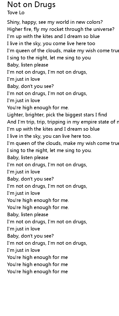 I'm not on drugs, I'm not on drugs, |