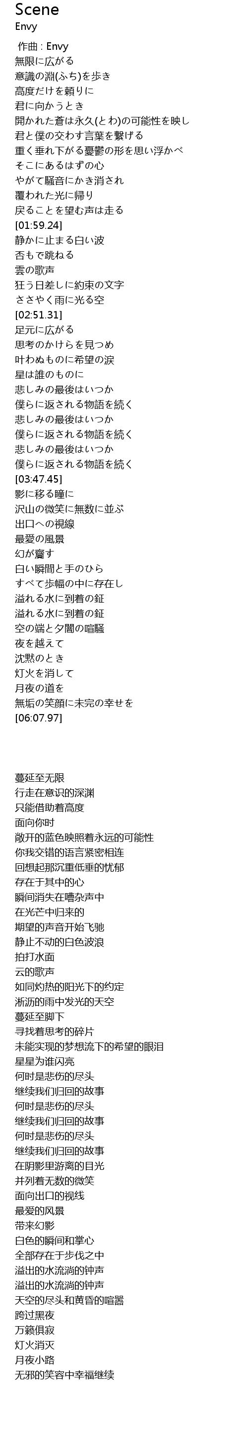 | [05:17.44] | 天空的尽头和黄昏的喧嚣 |