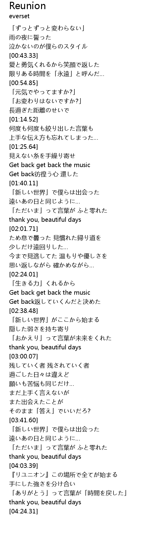 | [04:03.90] | 『リユニオン』この場所で全てが始まる |