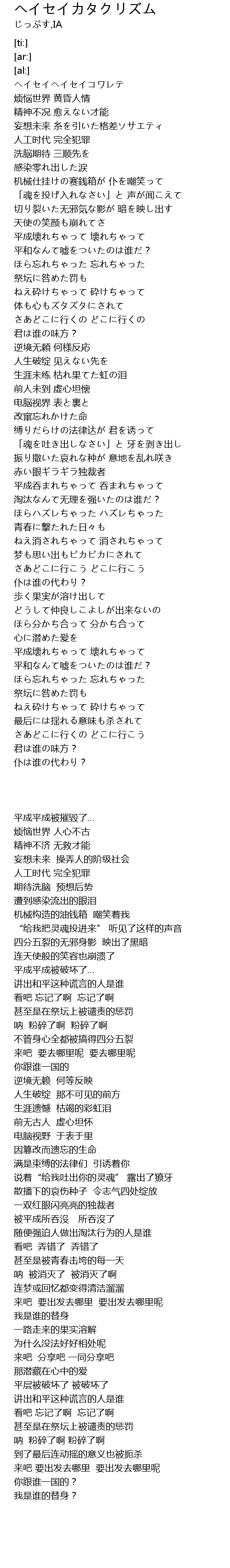 | [00:00.20] | ヘイセイヘイセイコワレテ |