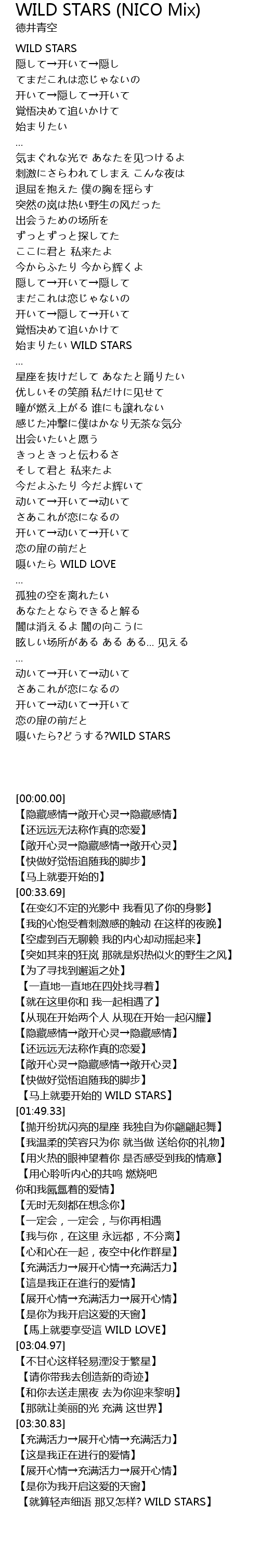 | [03:52.84] | 嗫いたら?どうする?WILD STARS |