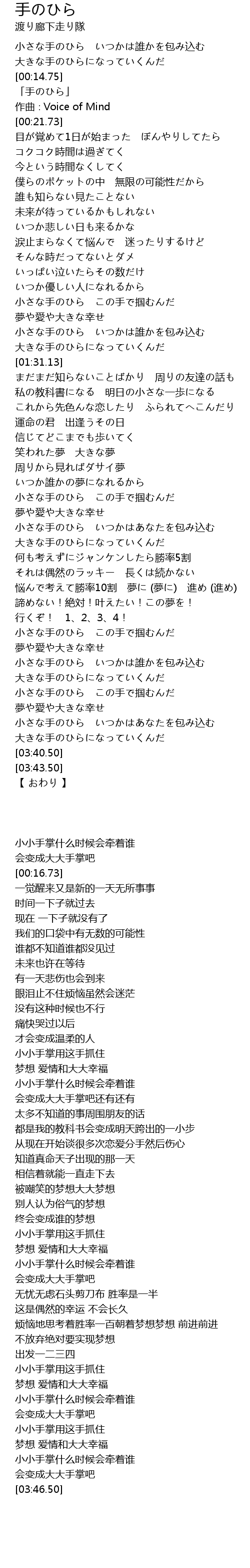 | [03:33.74] | 大きな手のひらになっていくんだ |
