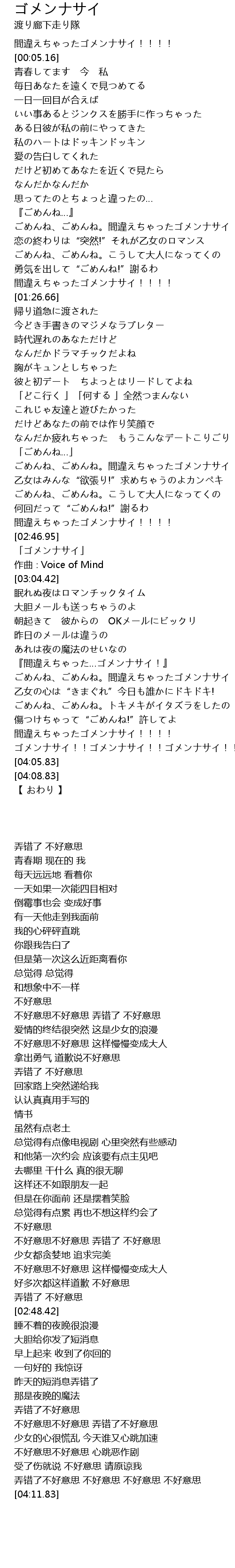 | [02:23.29] | ごめんね、ごめんね。間違えちゃったゴメンナサイ |