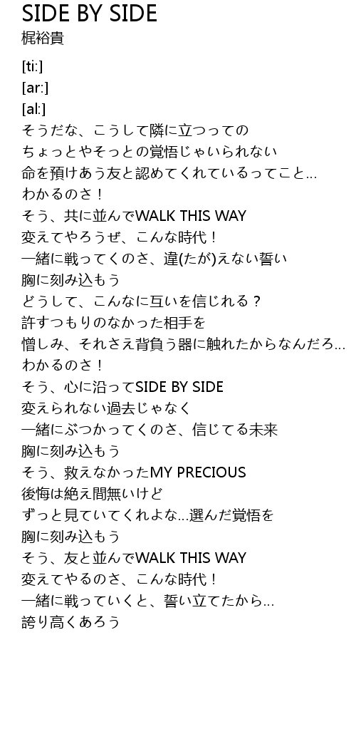 | [01:48.16] | xīn yán SIDE BY SIDE |