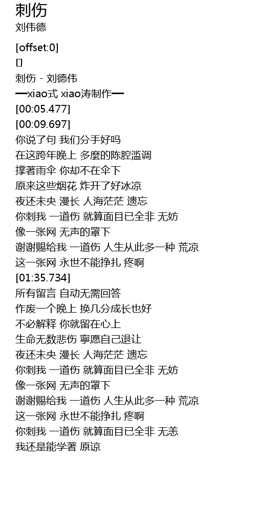 | [00:00.329] | 刺伤 - 刘德伟 |